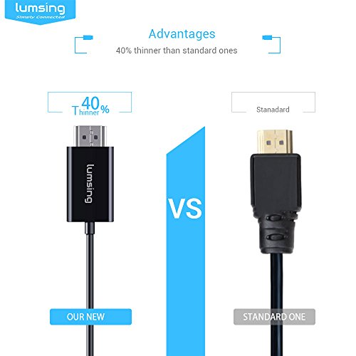 Flexible HDMI Cable- Lumsing Ultra-Slim High Speed HDMI Cable Supports Full 1080P, 4K Audio Return Channel 6.6ft/2m Nickel-Plated(Black)
