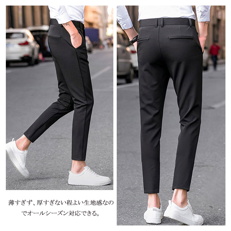 | 絶妙なアンクル丈で、洗練された美しいシルエットの九分丈パンツ。薄すぎず、厚すぎない程よい生地感なのでオールシーズン対応できる。シンプルなデザインでヒップ周りをすっきり見せてくれます。シワになりにくい素材なので履き心地も抜群。くるぶしをさりげなく魅せる9分丈は、上品な大人スタイルに合わせやすいのが魅力的。タイプもカラーもサイズも展開になって、今季ぜひお薦めな1本。 | |