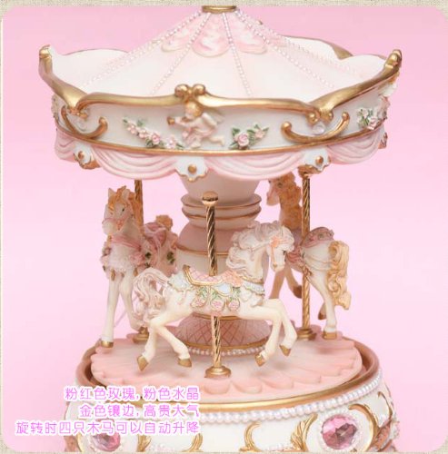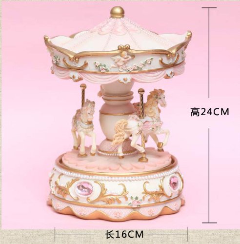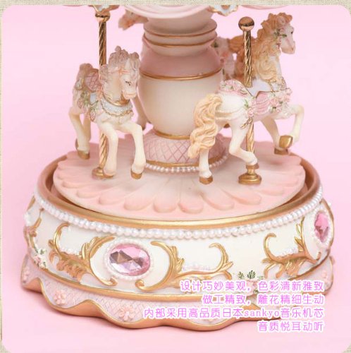 - Feature : Synthetic resin music box with the Castle In the Sky Tune / High quality polyresin music box / 18 note Movement / Wind up style / When wind-up ,Three horses will rotate with music