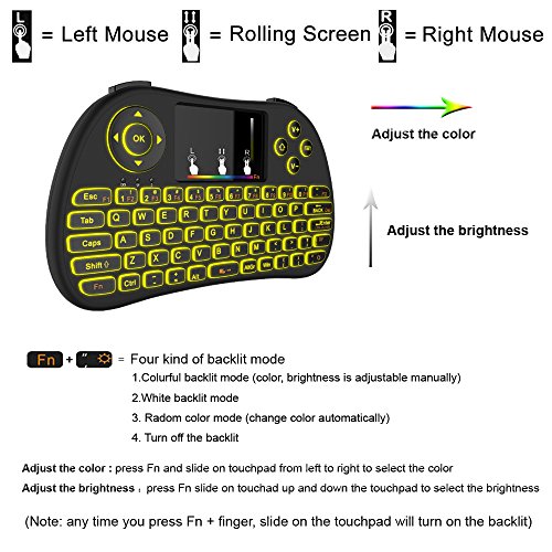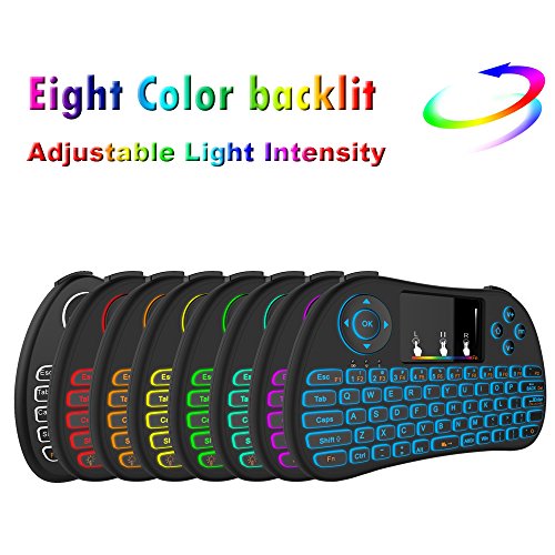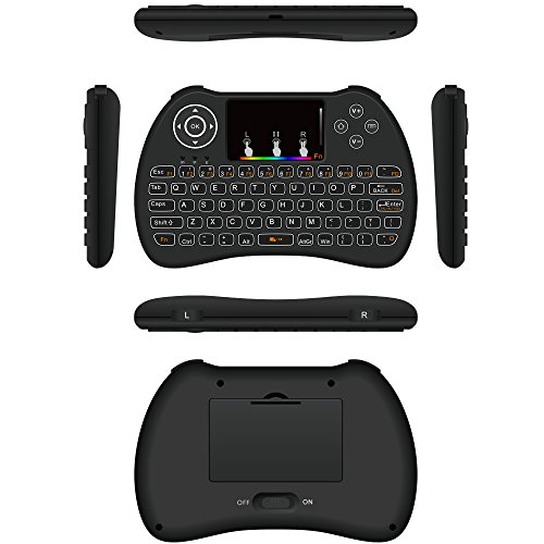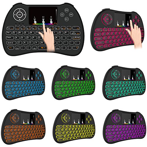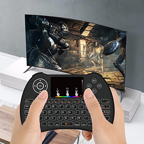 Wireless Keyboard, Tripsky H9+ 2.4GHz Colorful Backlit Wireless Mini Keyboard,Handheld Remote with Touchpad Mouse for Android TV Box, Windows PC, HTPC, IPTV, Raspberry Pi, XBOX 360, PS3, PS4(Black)