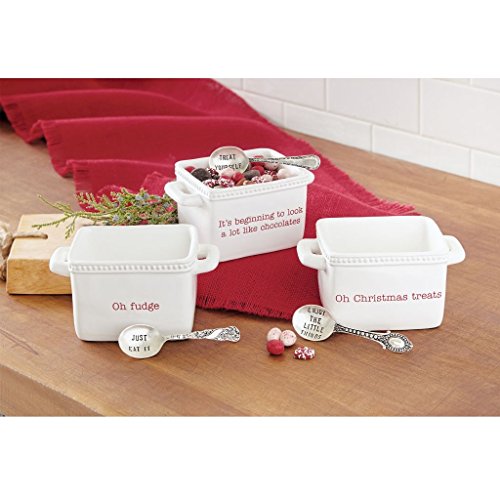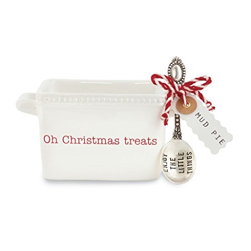 Product Description2-piece set. Ceramic caddy features debossed "Oh Christmas treat" sentiment. Arrives with stamped silver-plate "enjoy the little things" spoon.0
