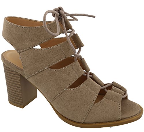 Top Moda Women's Cutout Lace Up Peep Toe Stacked Chunky Heel Sandal
