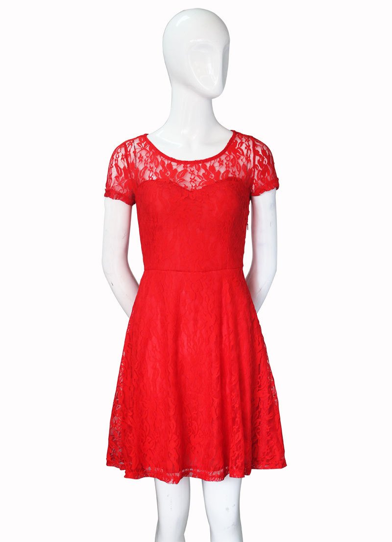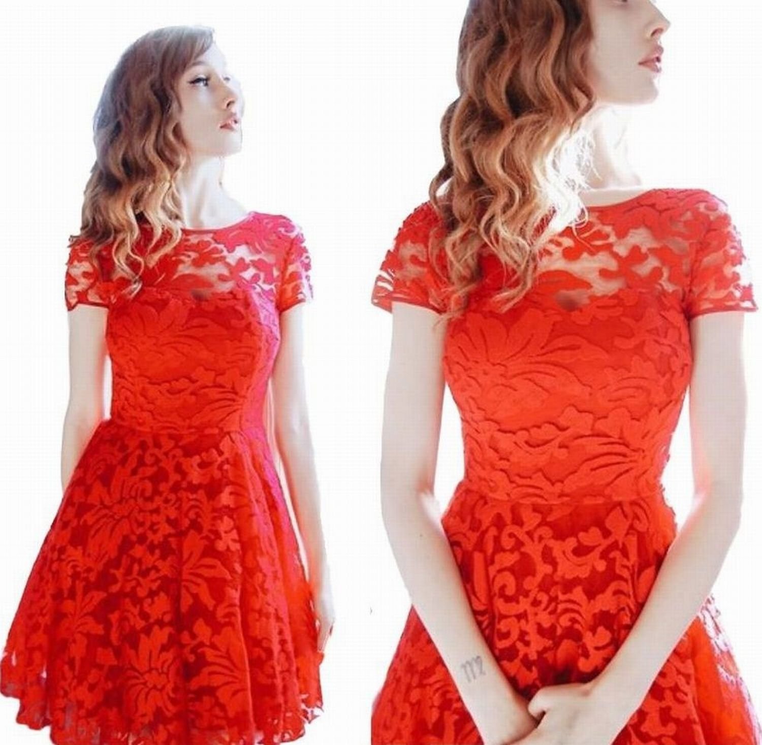 (Leorionna) Leorionna Brilliant Lace One Piece Knee Length Wedding Party Dress Women's