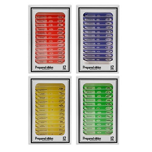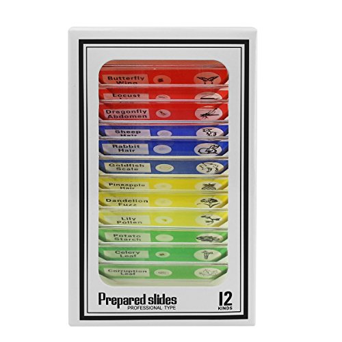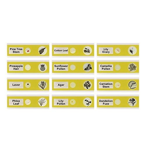Vishusju Plastic Prepared Microscope Slides (48pcs OR 12pcs) Biological Specimen Kits of Animals Insects Plants Flowers Sample for Kids Student Science Education (12)
