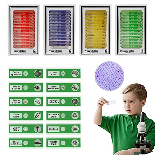 Vishusju Plastic Prepared Microscope Slides (48pcs OR 12pcs) Biological Specimen Kits of Animals Insects Plants Flowers Sample for Kids Student Science Education (48)