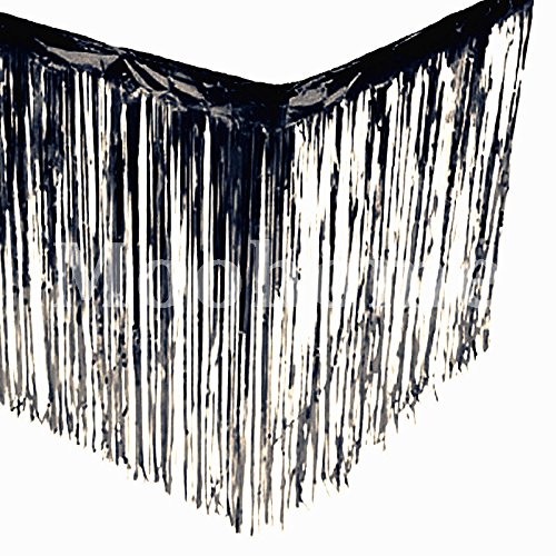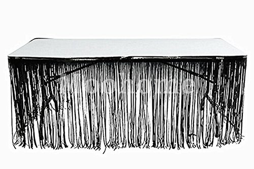 Moohome Metallic Foil Fringe Black Table Skirt 9ft. x 29inch Tinsel Party Table Skirt 108" x 29" (1-Pack, Black)