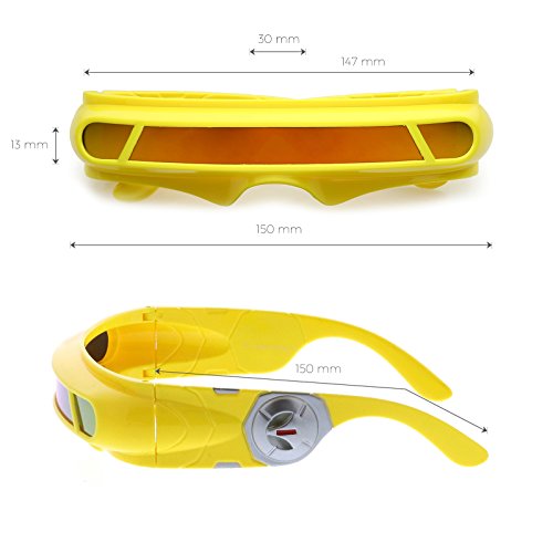 -. Feature : Futuristic Wrap Frame With Novelty Details / Colored Mirror Mono Lens With 100% UV Protection / Great For Robot And Cyclops Costumes / Includes sunglassLA Drawstring Pouch / 30 DAY MONEY BACK GUARANTEE AND 90 DAY LIMITED WARRANTY AGAINST MANUFACTURER DEFECTS