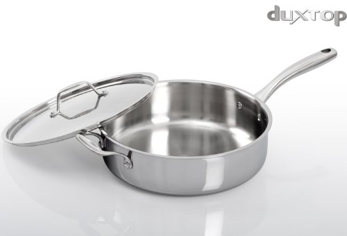 Duxtop Whole Clad Tri ply Stainless Steel Premium Cookware features three layer bounded construction, with one layer of thick aluminum core sandwiched between magnetic stainless steel layers. The whole clad structure eliminates hot spots and ensures even heating across the bottoms of pots and pans and all the way up the sides. The exclusive Whole Clad bonding technology extend cookware lifetime dramatically comparing to encapsulated base construction. This professional cookware is suitable for induction, gas, electric, and halogen cooktops. Other standard features that you can find in this Duxtop premium cookware: drip-free pouring rims; Stay-cool stainless-steel perfect-grip handle riveted to the pan; Stainless-steel lid with loop handle helps keep in heat and moisture. The stainless steel cookware is oven-safe to 550 degrees F; Freezer-safe for food storage; Dishwasher safe although hand washing is suggested. Lifetime limited warranty against manufacture defects.Feature