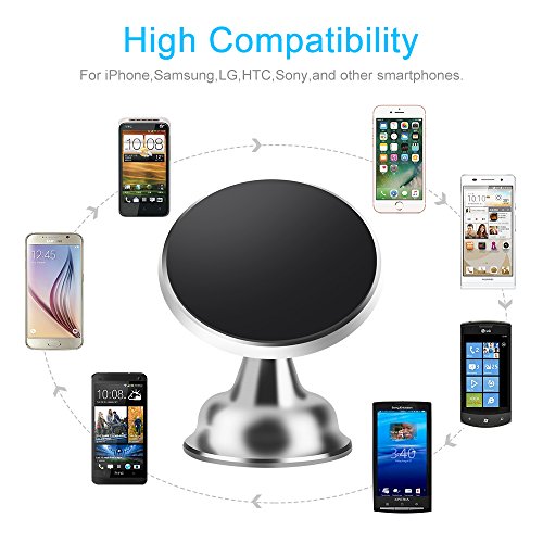 Magnetic Cell Phone Holder, POOPHUNS 360-Degree Rotation, With Fully Aluminum-Alloy Shell, Universal For iPhone 5/6/7/6Plus/7Plus, Samsung Galaxy S6/S7 and more smartphone