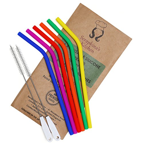 Reusable Silicone Straws BPA Free – (x6) STANDARD WIDTH 20oz, Eco Friendly for Safely Drinking Hot & Cold Drinks | Premium Quality, Seraphina's Kitchen | Protect Your Teeth Now!