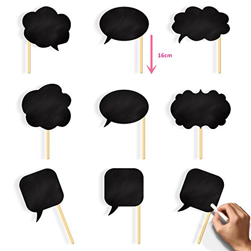 Noted: Set of 10 without the speech signs as shown, you can write any word by yourself with chalk.Photo props for any party, You can write any words on the board to create your own photo porps.Enjoy the fun time with your friends by providing them the funny photo booth props.
