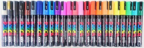 Uni Posca Paint Marker Pen, Medium Point(PC-5M), 24 Colors Set with Original Vinyl Pen Case