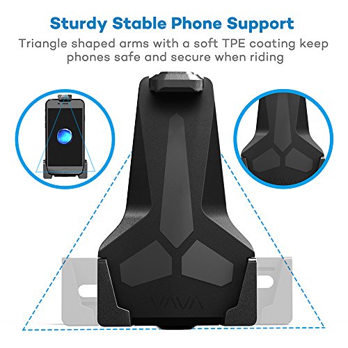 VAVA Bike Phone Mount, Phone Holder for Bike with Triangular Shape Arms to Keep Phones Safe (One-Handed Operation, 360 Degree Rotation, Fits Bicycles, Motorbikes, Scooters & Prams)