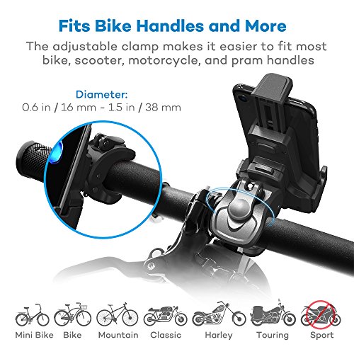 Fits Bike Handles and More: The adjustable clamp makes it easier to fit most bike, scooter, motorcycle, and pram handles; diameter: 0.63 in / 16 mm - 1.5 in / 38 mm