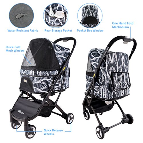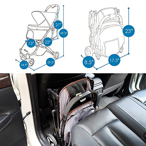 -. Binding : Misc. -. Brand : ibiyaya -. Feature : Have you ever seen a pet by stroller fold as small as this? Being only a little bigger than a large lady's handbag (L17.4 W8.7 H23.3 in), this sleek and compact stroller can fit into an airplane overhead compartment or sit in the footwell of the rear car seat. -. Label : ibiyaya -. Manufacturer : ibiyaya -. PackageQuantity : 1 -. ProductGroup : Pet Products -. ProductTypeName : PET_SUPPLIES -. Publisher : ibiyaya -. Studio : ibiyaya -. Title : Light weight pet stroller for cats and dogs, folds down to a large hand bag size, perfect for pet travel