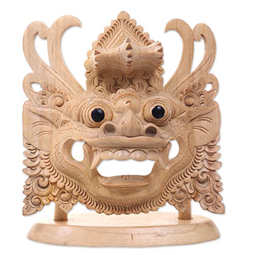 NOVICA 'Barong: King Of The Spirits' Wood Mask And Stand