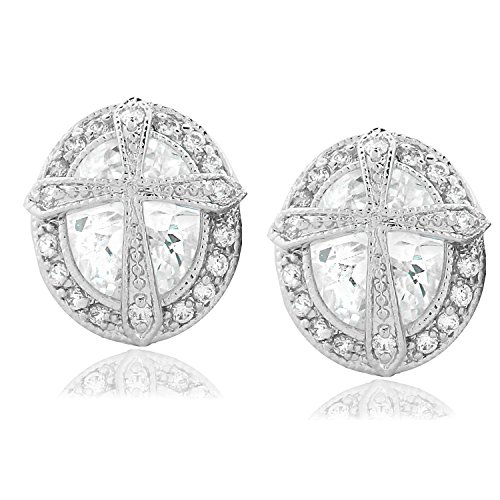 -. Binding : Jewelry -. Brand : Splendor Jewelry -. Department : womens -. Feature : Sterling Silver Earrings featuring Round and Oval-cut Cubic Zirconia in Prong Settings / Simple and Elegant Round Stud Earrings with a Lovely Center Cross. / Comes with a Free, Beautiful and Unique Jewelry Box ready for Gift Giving / Perfect GIFT for Christmas, Birthday, Anniversary, Bridesmaid or Wedding Gift / Nickel Free and Crafted in 925 Sterling Silver. -. ProductGroup : Jewelry -. ProductTypeName : FASHIONEARRING -. Title : Sterling Silver Pave Clear Cubic Zirconia Cross Post Stud Earrings