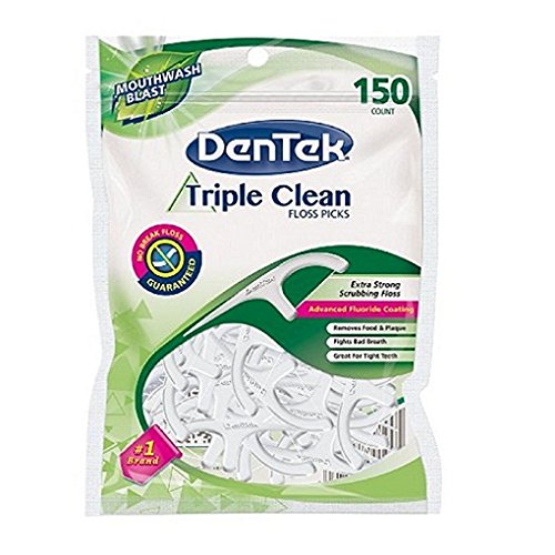 Studio : DenTek Publisher : DenTek Binding : Misc. Product Description DenTek Triple Clean Floss Picks features scrubbing floss that removes meal debris, a textured pick to deep clean between teeth and a built-in tongue scraper to keep breath fresh all day long. Conventional dental floss can't always remove food and plaque in hard-to-reach interdental spaces. DenTek offers a triple-clean flossing product that helps keep your whole mouth healthy. Try DenTek Triple Clean Floss Picks. When you need to remove food and plaque after eating, doctors recommend flossing to prevent cavities, gum disease and other oral health diseases. Protect your teeth against stains and decay by flossing after every meal. Only Triple Clean Floss Picks by DenTek provide silky smooth floss, textured dental pick and a built-in tongue scraper to deep clean every part of your mouth. Oral benefits of using DenTek Triple Clean Floss Picks after every mealtime include removing food and plaque, reducing the chance of tooth decay and fighting bad breath-all day long. Do you avoid flossing because of the hassle and the mess? Tired of figuring out how to wrap roll floss around your fingers to get the best angle for cleaning hard-to-reach back teeth? DenTek floss scrubs between any two teeth without having to risk cutting off circulation to your fingers. Get DenTek floss picks to help you show off your healthy smile, and get triple the protection of traditional rolled floss. DenTek Triple Clean Floss Picks also come in 90-count packages. 0