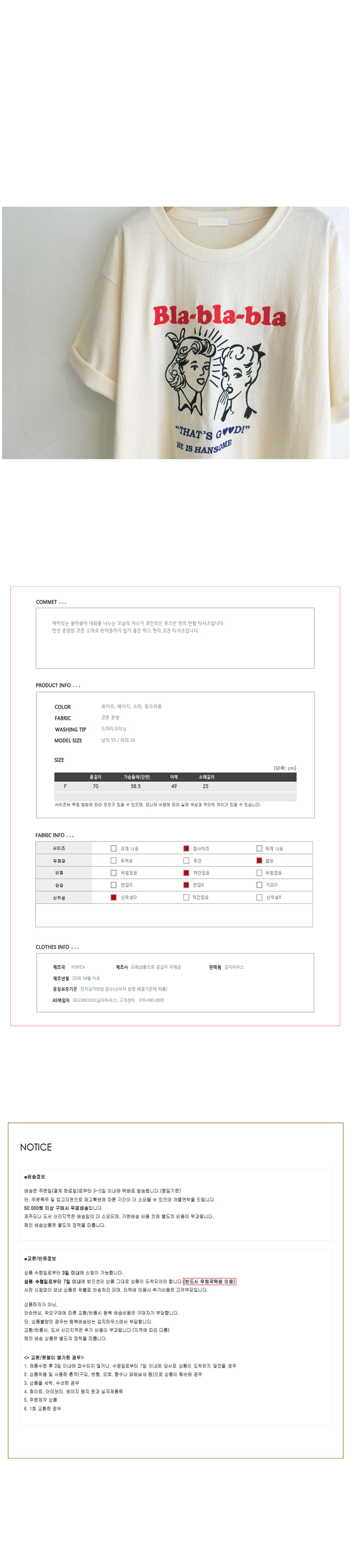 Free(단면): 가슴둘레 58.5m, 어깨 49cm, 소매 25cm, 총장 70cm
