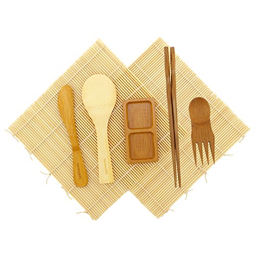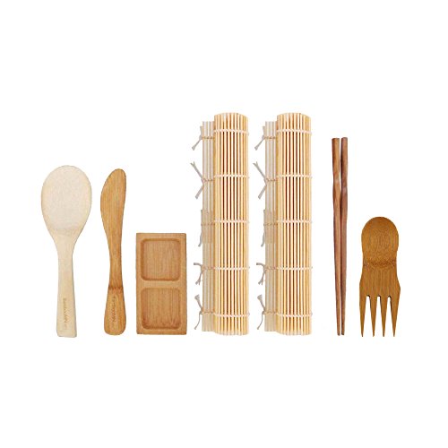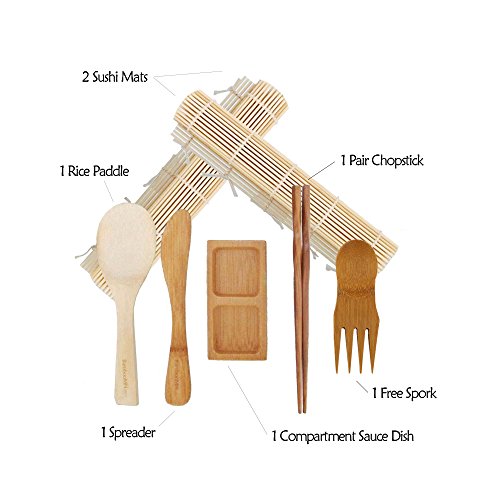 Studio : BambooMN Publisher : BambooMN Product Description PREMIUM GRADE SUSHI MAKER KIT consists of 2x Natural Bamboo Rolling Mats, Rice Paddle, Rice Spreader, Sauce Dish, Chopsticks, and Free Spork