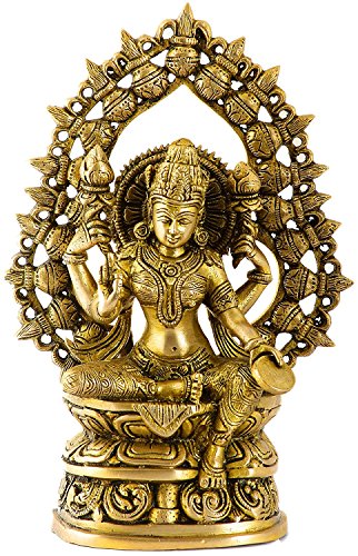 Goddess Lakshmi with Aureole of Purna-Ghatas - Brass Statue