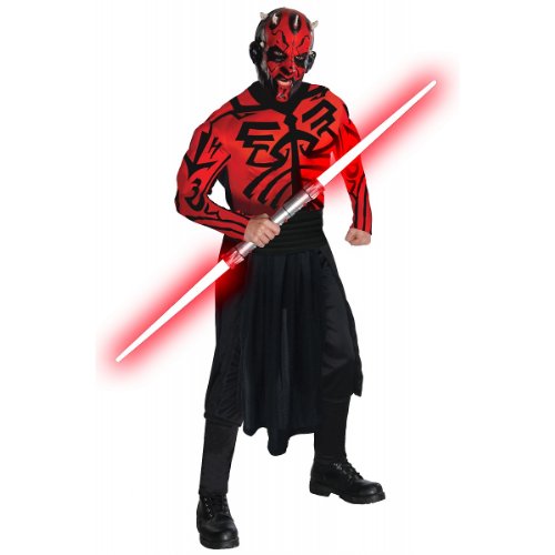 -. Binding : Apparel -. Brand : Rubie's -. ClothingSize : One Size Fits Most Up To 44,X-Large 44-46 -. Color : Black -. Department : mens -. Feature : Deluxe darth maul costume features a jumpsuit with rubie's patented muscle chest technology / Darth maul mask included; look for light sabers, sold separately / Officially licensed star wars costume created in partnership with lucas films / Available in adult standard (jacket size 42 to 44) and xl (jacket size 44 to 46) / Rubies costume has been a world leader in dress-up fun for all ages since 1950 -. Genre : TV/Movie Characters -. IsAdultProduct : 0 -. Label : Rubies Costumes - Apparel -. Manufacturer : Rubies Costumes - Apparel -. MPN : R880675 -. PackageQuantity : 1 -. PartNumber : R880675 -. ProductGroup : Apparel -. ProductTypeName : ADULT_COSTUME -. Publisher : Rubies Costumes - Apparel -. Size : One Size Fits Most Up To 44,X-Large 44-46 -. Studio : Rubies Costumes - Apparel -. Title : Star Wars Adult Deluxe Darth Maul Muscle Chest Costume And Mask