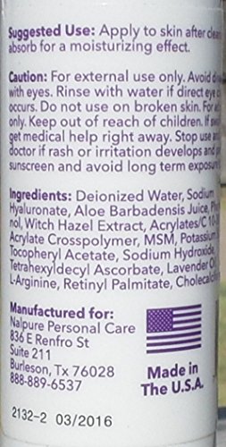 Money Back Guarantee Nalpure is manufactured in the USA facilities that are FDA approved. No animals are ever tested with our products. You should notice improvements in your skin within 30 days or you let us know. We will refund your money, no questions asked. The only thing you have to lose is your wrinkles. Try one container of Nalpure Hyaluronic Acid Serum for 30 days and see.