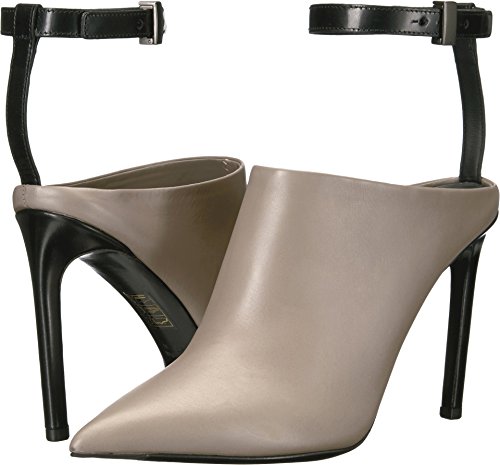 Pointed toe, ankle strap mules.
