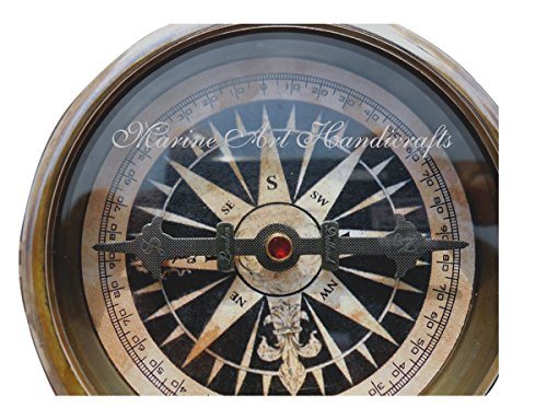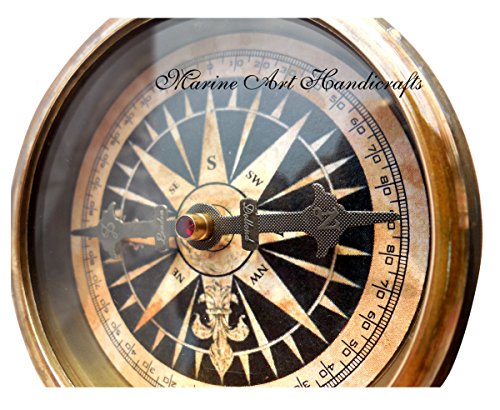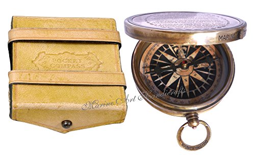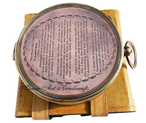 'Robert Frost Poem'' Best Christmas Gift Engraved Brass Compass with Embossed Needle & Leather Case. C-3239