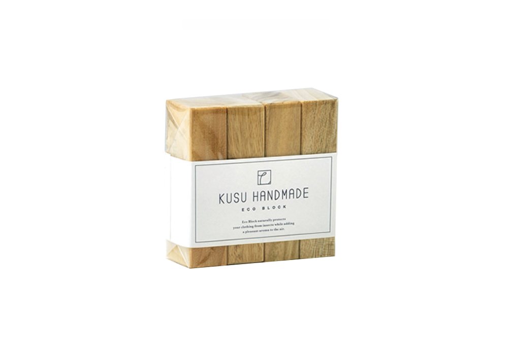 "KUSU HANDMADE Eco-block 4 packs" is an insect repellent (for clothing) that recycles the edge material of Kusunoki (Kusunoki).