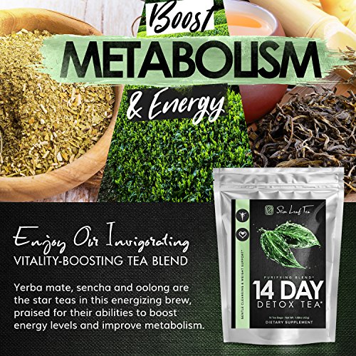 -. Feature : JUMPSTART YOUR WEIGHT LOSS GOALS - Weight loss isn't easy, but this 14 day detox tea helps you kick off your fitness goals in a big way. Slim Leaf Tea can help you shed the pounds quickly and easily, and support a consistent, healthy body weight. / INCREASE ENERGY LEVELS - This vitality-boosting blend includes ginseng, sencha, oolong and yerba mate which give you a clean, smooth boost of energy to get you through your day. Slim Leaf Tea flushes out those heavy toxins that slow you down, so you could perform at your peak. / IMPROVE DIGESTION AND INTESTINAL HEALTH - Slim Leaf Tea supports a healthy digestion process. Its gentle cleansing formula helps rid the body of excess waste, restoring essential balance in the gut to keep everything running smoothly. / SUPPRESS APPETITE AND CURB CRAVINGS - If you're like many of us, you might struggle with resisting the urge to snack between meals, or find yourself overeating at breakfast, lunch or dinner. Slim Leaf Tea helps decrease your appetite and increase satisfaction after eating, to make you feel fuller, longer. / STRENGTHEN YOUR IMMUNE RESPONSE - Slim Leaf Tea helps to bolster your body's natural defenses, as powerful time-tested herbs strengthen the immune system. That means less time spent sick in bed, and more time enjoying life with your loved ones.