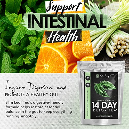 -. Title : Slim Leaf Tea -- 14 Day Tea Detox for Weight Loss and Digestive Health - Appetite Suppressant - Anti Gas and Bloating - Herbal Cleanse for Intestinal Health (14 tea bags - 3g ea)