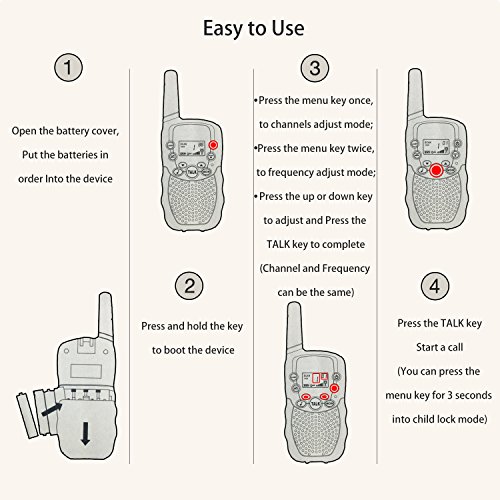 CHANNEL: 0.5w 22 channel, simple operation and fun to use. 2 miles range enable long distance play and explore a word of possibilities within you child’s outdoor adventures