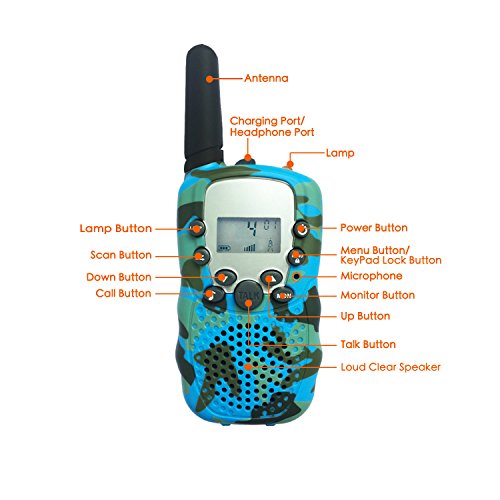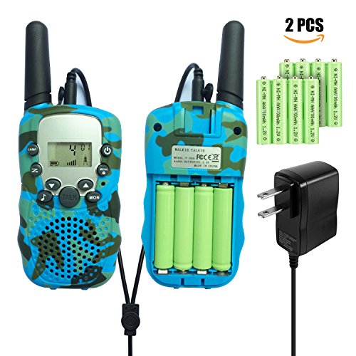 Walkie Talkies for Kids, 22 Channel FRS/ GMRS Two Way Radio Up to 3 KM Range Portable Walky Talky, Rechargeable Two Way Radio for Children (1 pair camouflage blue)