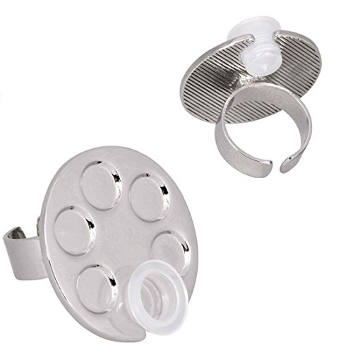 -. Title : AKOAK 1 Pcs 5-well Circle Painter's Blending Palette Design Style Mini Manicure Palette Wearable Metal Nail Art Polish Holder Paint Palette Finger Rings Nail Art Tools