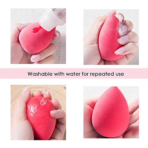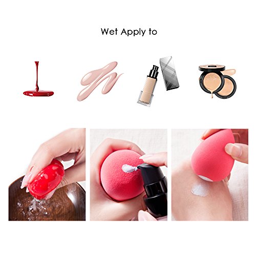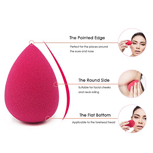 Anbber 6 in 1 Makeup Sponge Set meet all your needs. Get 1 Anbber makeup sponge and moisten it with warm or cool water, squeeze it gently to remove the excess water. Make sure the sponge is not dripping wet. Apply some liquid makeup (foundation, concealer, primer) onto the sponge or dab the it gently into the makeup. Tap the sponge against your skin to apply the makeup. (Tap it but don't wipe it.) Use the round bottom for large area and the tip for detail spot. Bounce it gently until the makeup is perfectly blended. Say goodbye to the brushes streak! Now your skin looks even and natural.