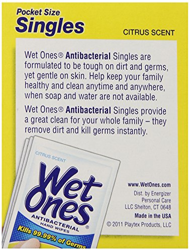 Studio : Playtex Products, Inc Publisher : Playtex Products, Inc Binding : Health and Beauty Product Description The first line of defense against the spread of germs is washing hands often. Wet Ones® Antibacterial Hand Wipes are an effective solution to keeping hands clean when soap and water are not available or convenient. Germs spread when a person coughs or sneezes, or touches something that is contaminated with bacteria and then touches their eyes, nose or mouth. Wet Ones® Antibacterial Hand Wipes are clinically proven to be just as effective as gel hand sanitizers in killing 99.99 percent of germs, but they also clean away dirt and messes without drying skin like alcohol-based hand sanitizers. Wet Ones® Antibacterial Hand Wipes are also portable and convenient, so they can be discreetly tucked into school lunches, brought on airplanes or used whenever a sink is out of reach. 0