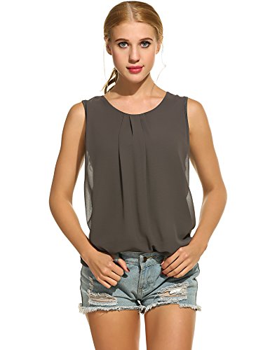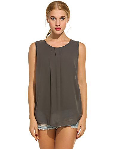 Binding : Apparel Product Description Women's Casual Pleated Front Chiffon Sleeveless Blouse Tops 4 Sizes: S, M, L ,XL S----Chest 33.5"----Waist 31.2"----Length 26.9" M----Chest 35.1"----Waist 32.8"----Length 27.1" L----Chest 36.7"----Waist 34.3"----Length 27.3" XL----Chest 38.2"----Waist 35.9"----Length 27.5" XXL----Chest 40.1"----Waist 37.7"----Length 27.7"