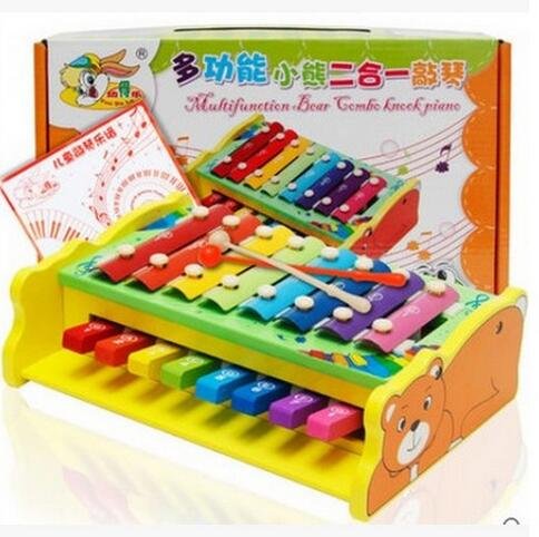 HEMALL Bear Xylophone Knock On Piano Baby Kids Wooden Toddler Learning Education Musical Toy Q490
