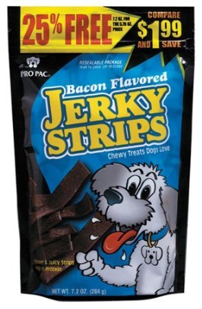 -. Title : PRO PAC Bacon Flavored Jerky Strips Dog Treats, 7.2-Ounce Bag