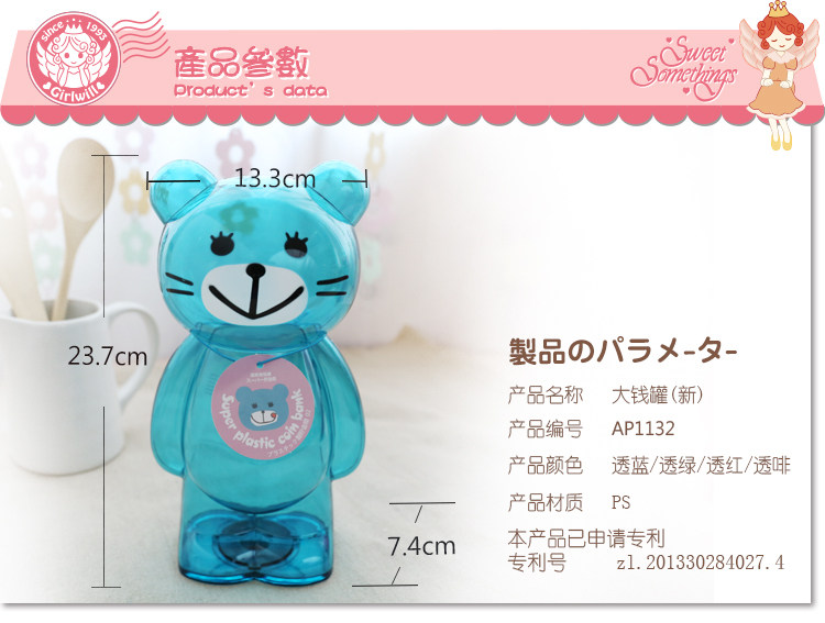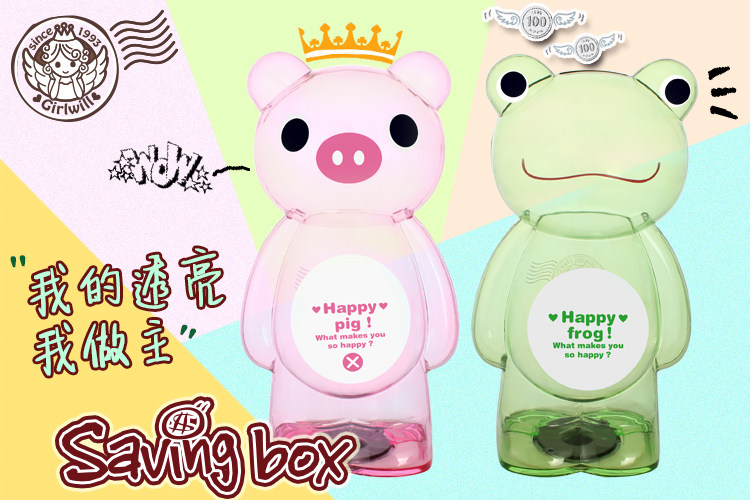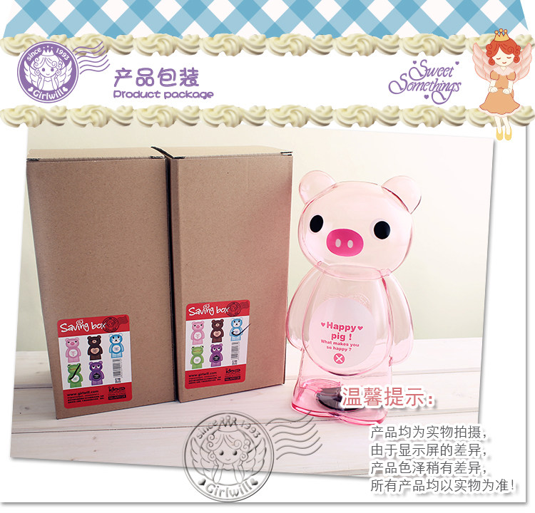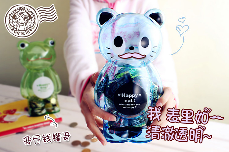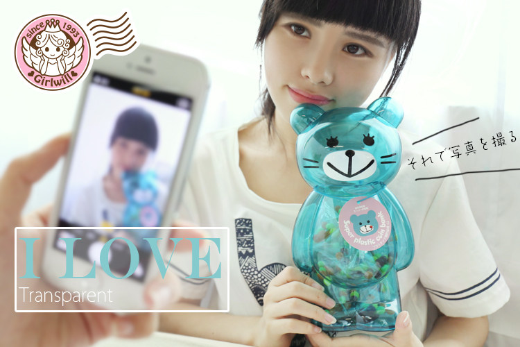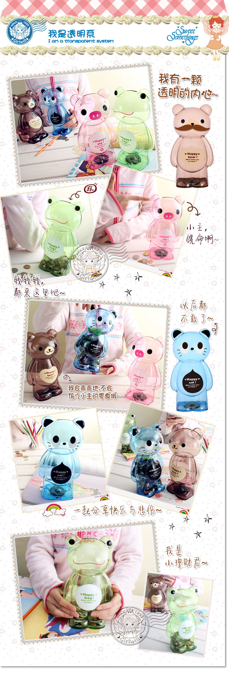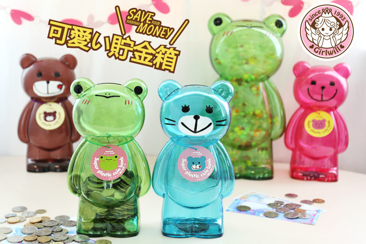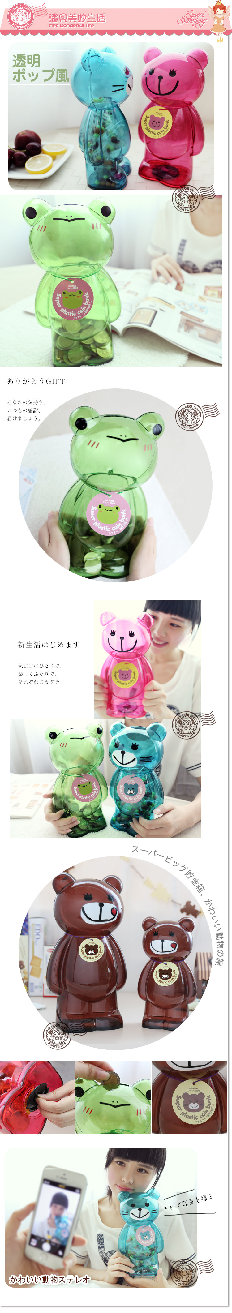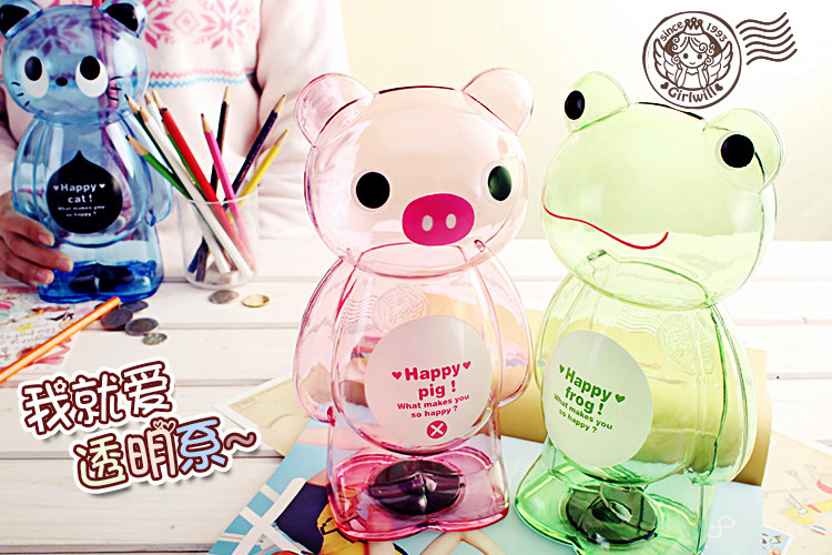 卡通大号透明储蓄罐 可爱小熊存钱罐创意塑料钱罐 六一儿童节礼物
