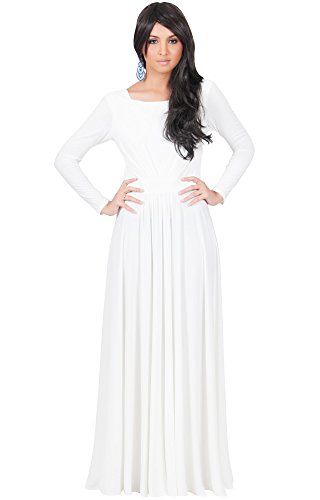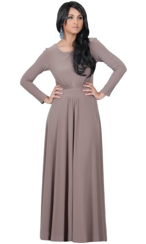 A very elegant long sleeve designer maxi dress from Koh Koh. This beautiful dress features a round neck, long sleeves and lovely flowing empire skirt.Feature