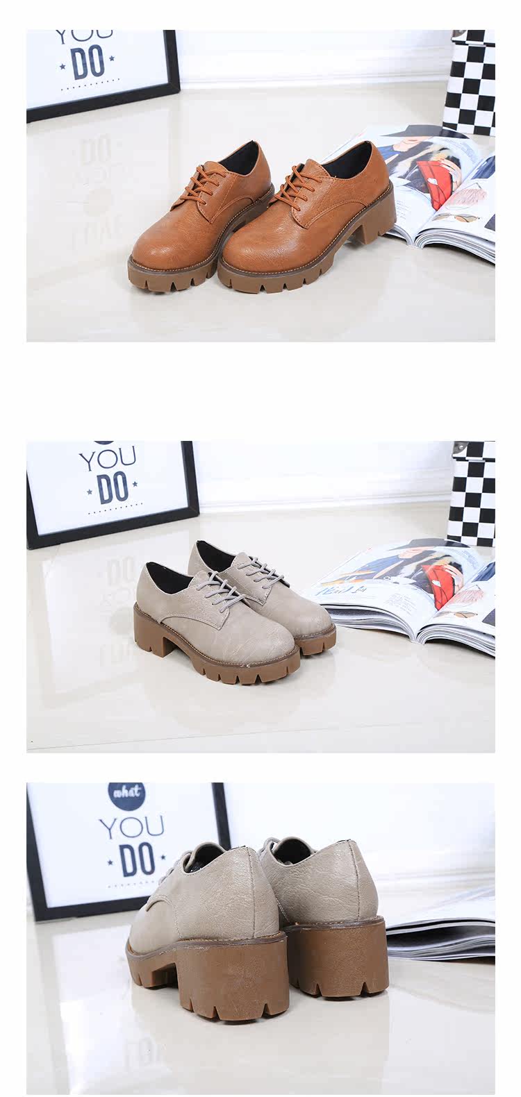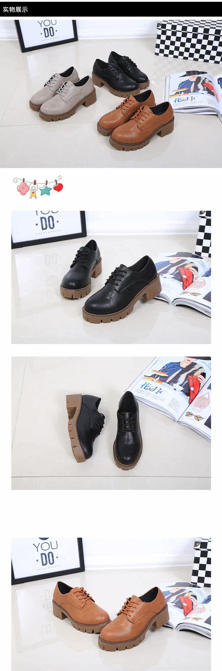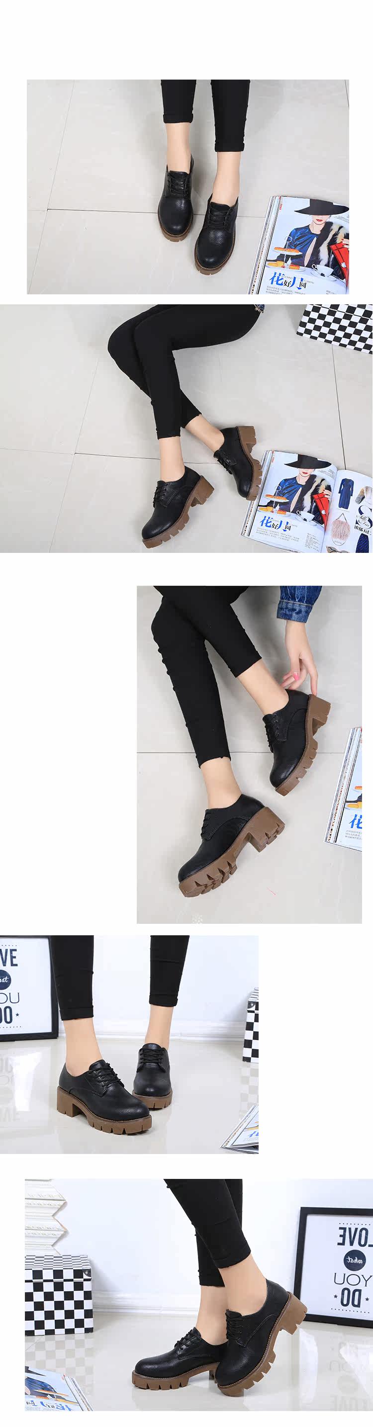 英伦学院风小皮鞋女秋季新款粗跟中跟单鞋百搭学生休闲女鞋子