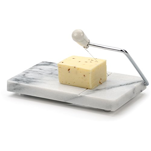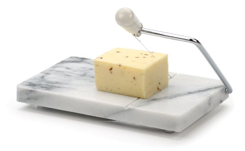 Product DescriptionThe RSVP Marble Cheese Slicer helps keep cheese cool while the durable stainless steel wire cuts either hard or soft cheese. Rubber feet protect your countertop or table. Extra wire included.