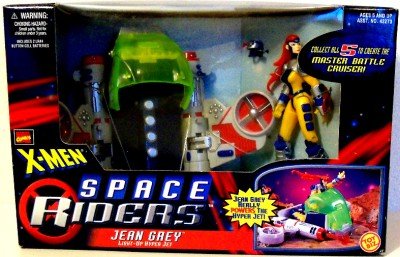 -. Feature : Jean Grey Action Figure & Light-Up Hyper Jet Vehicle / Pivoting Space Wing - Space Wing - Docking Connector - Hinged Blast Screen - Laser Blast Missiles - Battery Compartment - Light-Up Missile Chargers / Out of Production / Retired - Originally released in 1997 / Ages 5 and up