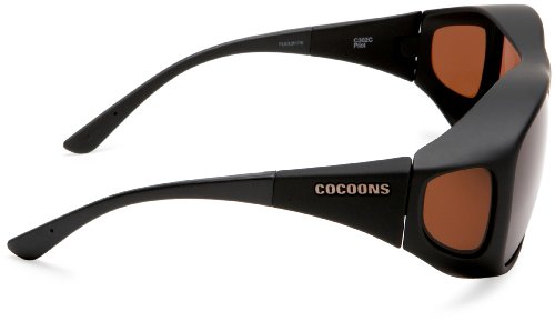Designed to fit comfortably and securely over 99.5% of all prescription eyewear frames. Extra Large Fits over prescription frames measuring less than 5 1/2"w 2"h. Six sizes to choose from. 360° of Protection: It is important that a sunglass provides protection from all angles. Cocoons patented frame designs block damaging UV light and glare from all angles, completely isolating the eyes in a cocoon of filtered light. Each pair includes a custom designed protective neoprene case, large lens cloth and a limited lifetime frame warranty.Feature