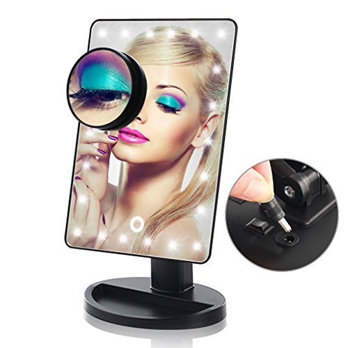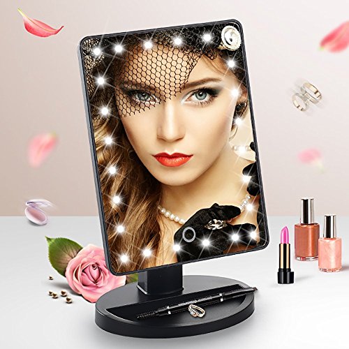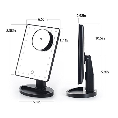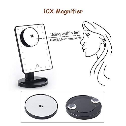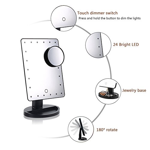 Lighted Makeup Mirror, 24 LED Touch Screen Vanity Mirror with 10x Magnification ,USB Cable and Battery Dual Power Source