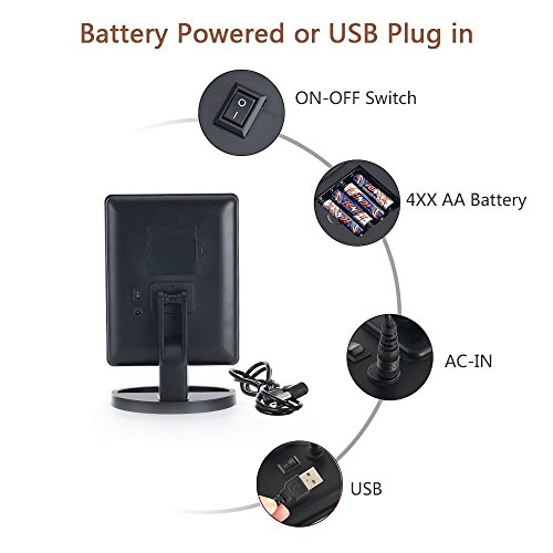 DUAL POWER SOURCE: This LED makeup mirror is operated by a touch sensor on the middle lighted with included micro USB cable or 4pcs AA batteries(NOT included) even when the batteries run out.