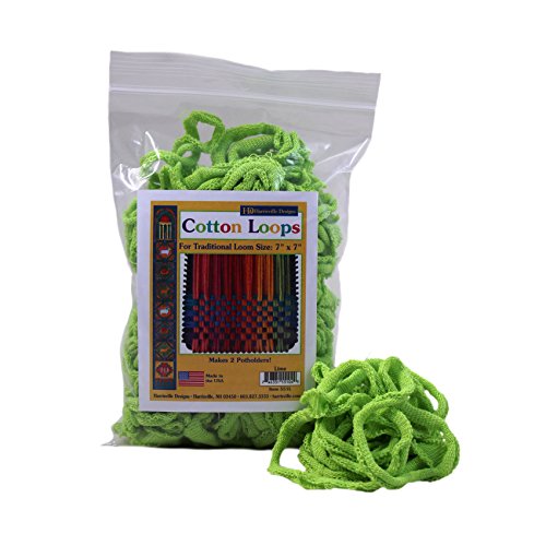 Family owned and operated since 1971, Harrisville Designs Bright Line White Cotton Loops are custom-sized for our traditional 7-inch x 7-inch potholder loom (sold separately). This bag contains enough loops to make two small potholders using the Harrisville Designs original, sturdy, long lasting Metal Potholder Loom. Crafters can use these premium quality, custom made, 100%-cotton loops to make potholders in a single color; or create multi-shaded designs by combining other Harrisville colors (sold separately). Hand weaving is a time-honored, educational, fun, and truly bonding activity for both kids and adults to create together. Children feel accomplished when they create beautiful, practical items they can use at home or give as gifts. Hand weaving, knitting and felting are wonderful intergenerational activities your whole family can share. At Harrisville Designs, we are exceptionally proud to preserve and share our New Hampshire tradition of handmade 100% cotton textiles produced exclusively in the USA.Feature