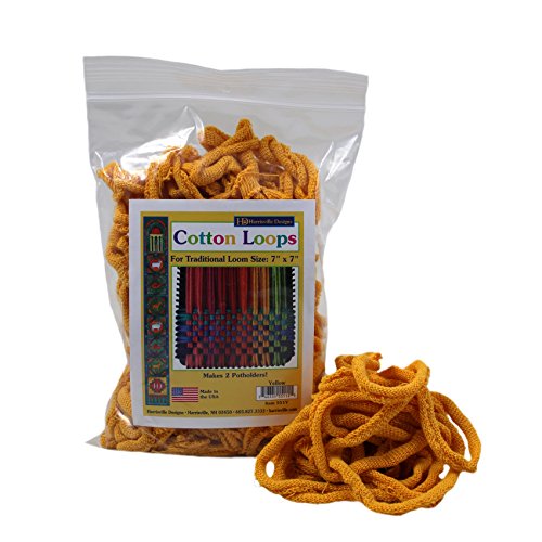 Makes two (2) beautiful 6-inch x 6-inch potholders with this bag of White Cotton Loops, using the Harrisville Designs original, sturdy, long lasting 7-inch x 7-inch metal potholder Loom (sold separately)